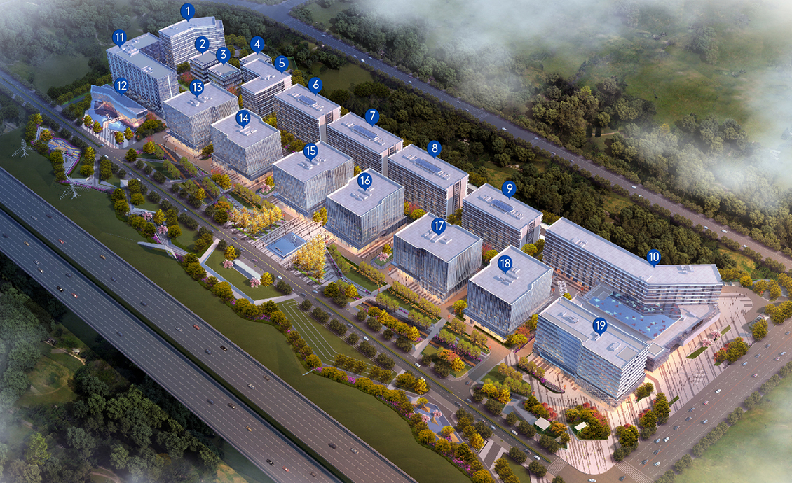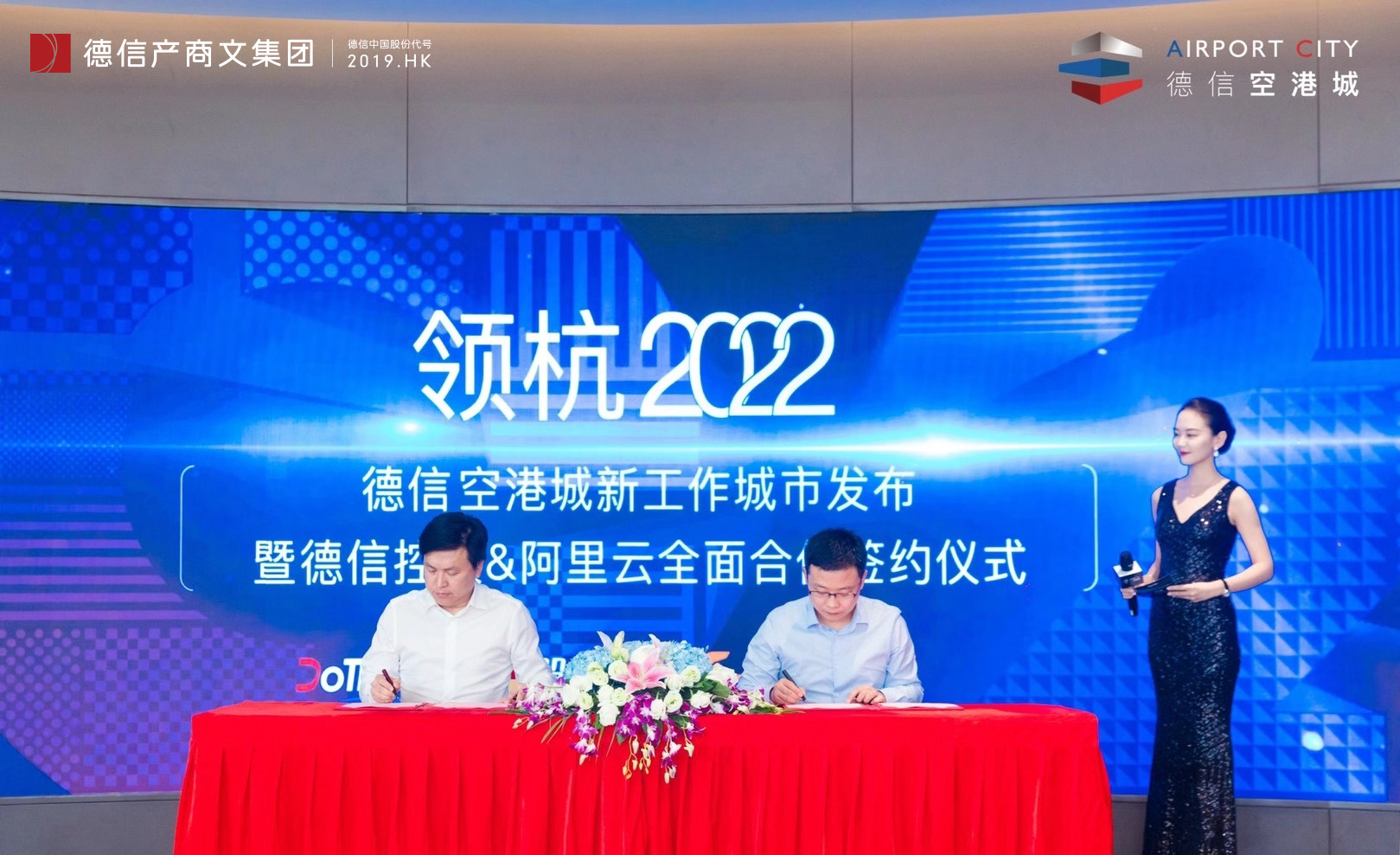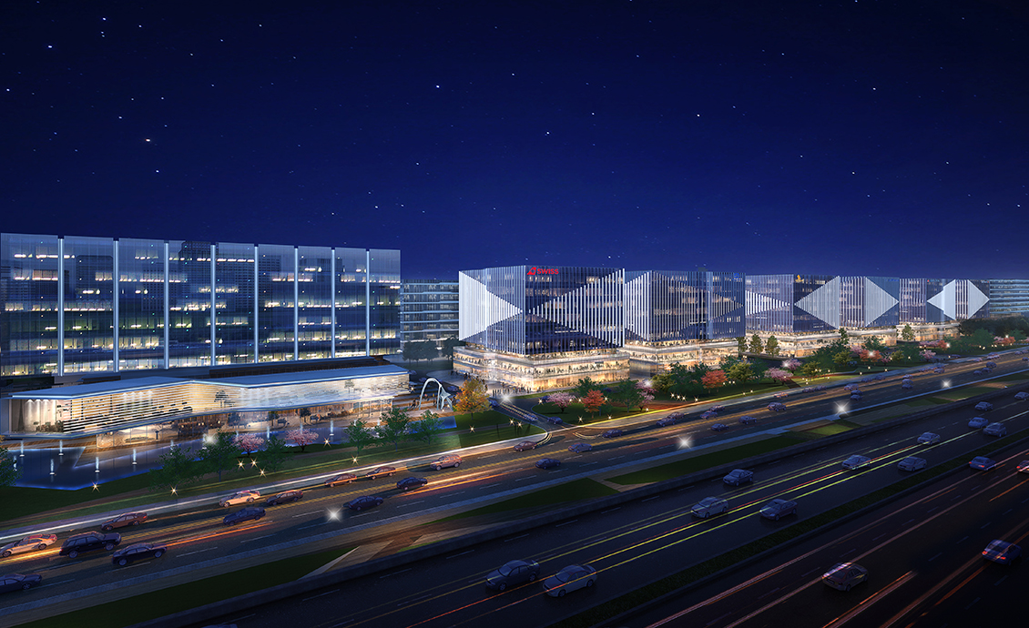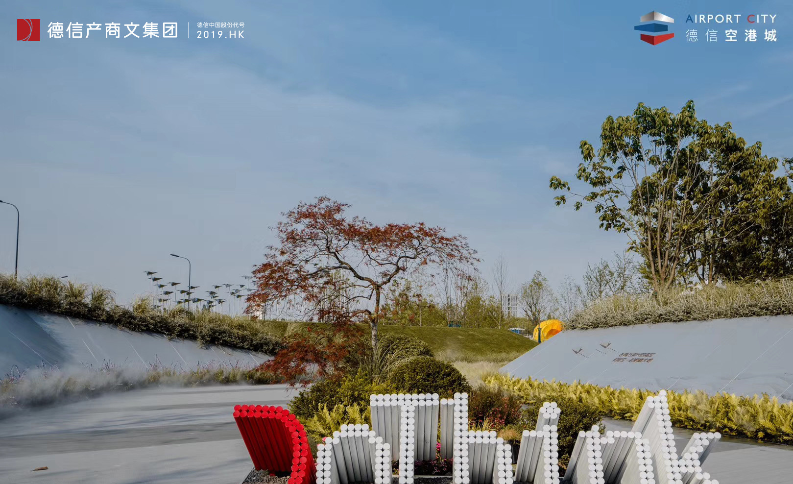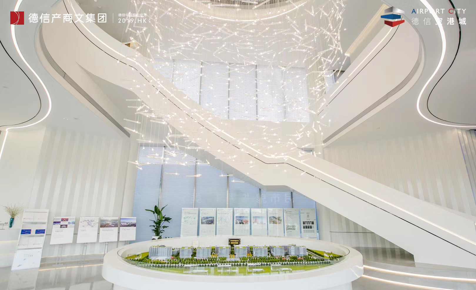 德信空港城总建筑面积约40万方,地铁7号线新港站上盖,一站机场,换乘地铁1号线、机场快线(在建),接轨五维一体国际枢纽(航空、地铁、高铁、高速、快速路)。项目以“未来、生态、高效、复合、智慧”为设计理念,由6幢总部办公、3幢花园独栋商办、8幢国际公馆、1幢高星级酒店、1幢城市会客厅组成,复合工作、生活、休闲、购物等于一体,并引入阿里云智能科技,打造杭州空港首个临空智慧产城。