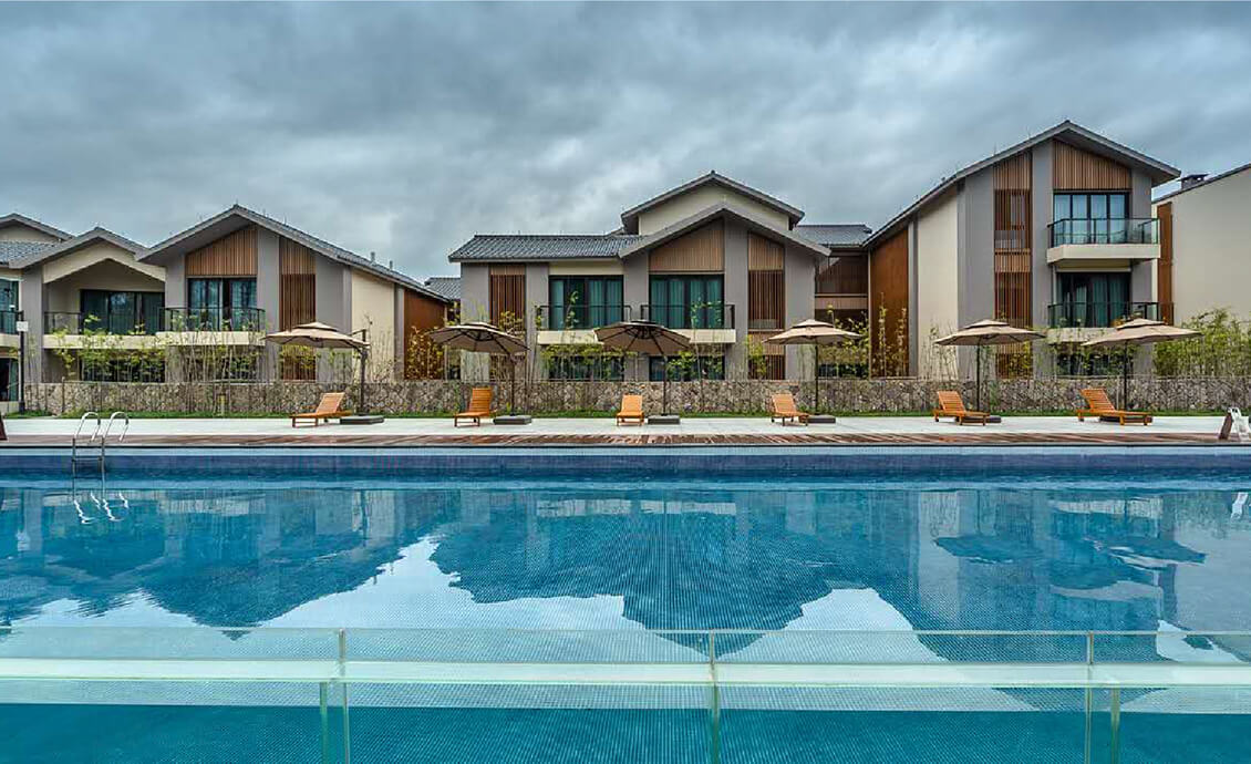 Dexin Liuxianli is a representative project of culture and business travel created by Dexin Group of industry, business and culture. The project is located in the core of Shenxianju resort in Taizhou Xianju 5A scenic spot, close to the tourist service center, and is an important commercial supporting facilities of Shenxianju scenic spot. The project covers a total area of 175 mu, with a total construction area of about 80000 m2, including characteristic commercial street, hotel, ecological experience area and hotel apartment. It integrates local folk culture and combines the surrounding landscape and water system to strive to build a cultural tourism complex integrating leisure elegance, vacation and health preservation, tourism business, cultural performance and theme residence. Dexin Kaiyuan Yiju Hotel and Radisson Yiman hotel have been introduced.