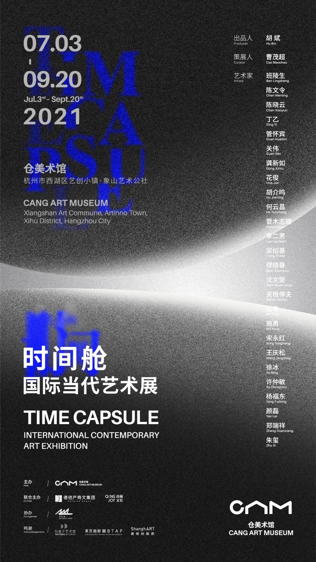 为了配合1939年纽约世博会“未来世界”的主题,1938年美国总统罗斯福邀请爱因斯坦为5000年以后的人类写一封信。爱因斯坦用特制的纸张与墨水写下了《致后人书》,他回顾了人类取得的重要科学技术成果,也表达了对战争的担忧。把这封信与凝聚着20世纪上半叶人类智慧的器物被放置于一个特质容器内,一起埋入地下,等待若干年后的人们再挖掘出来研究,这个行为被称之为放置“时间舱”。 本次展览以“时间舱”为题,意欲引入时间意识,切片当代艺术对客观世界的映照,既是审视过去,同时也关照未来。展览展出26位当代艺术家的40件作品,涵盖绘画、雕塑、摄影、装置、影像、行为等多种媒介,呈现自上世纪80年代至今近半个世纪的当代艺术生态。试图从全球景观中织就一张线性的图景,阐述任何表达都可以具备产生多元性艺术语言的可能性。时间与艺术创作历来是相生关系,这体现在艺术家对某一课题的持续研究,同时全球的复杂进程,文化的多样性,技术推动的媒介出新也对艺术语言的发展提供了充分的支撑。后疫情时代人类处在技术爆发的节点之上,AI艺术,NFT等创作方式方兴未艾。在未来,艺术将怎样作用于社会与大众?本次展览呈现过去与当下,也希望能够给公众提供对未来的想象。 当前国内民营美术馆发展如火如荼,仓美术馆也应运而生。仓美术馆致力于当代艺术的研究、收藏、交流、展示和传播,努力成为激发中国当代艺术的重要场域。同时,根植杭州这片深厚的文化沃土,深耕在地属性,建立美术馆与城市、公众、社群的共生关系。时间舱是一个在未来能够打开的时间概念。今天,仓美术馆埋下的“时间舱”,以一种有意识的慢,在激流中打磨自身,未来成为城市的文化名片。