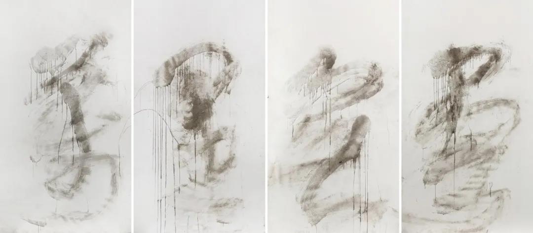花俊 《万里无云》 270×580cm 宣纸、胶水、香灰 2016