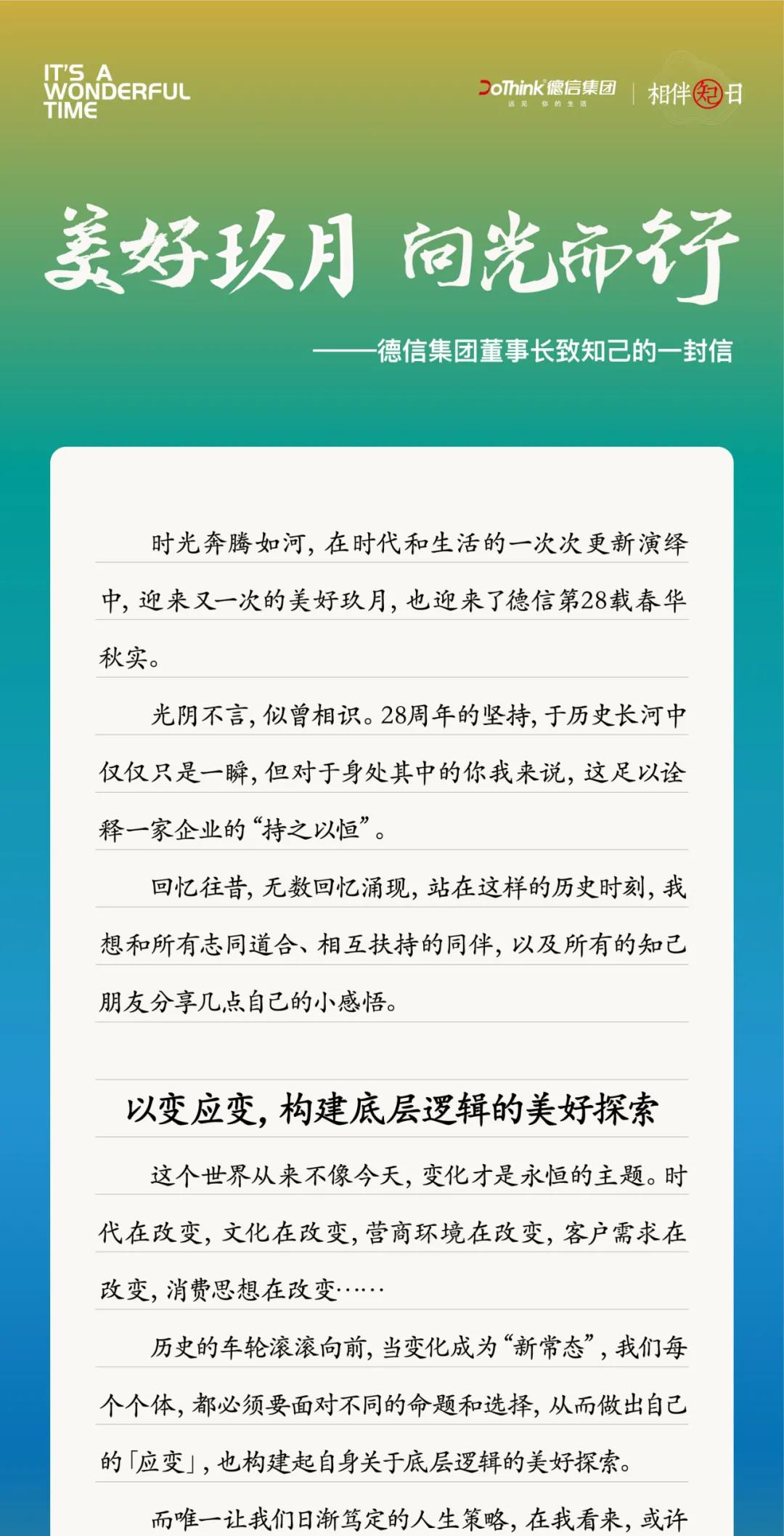 美好玖月,向光而行 | 28周年,德信集团董事长致知己的一封信