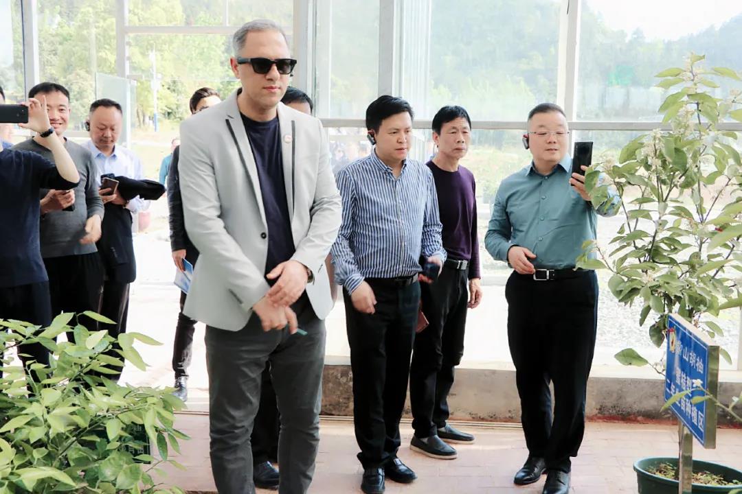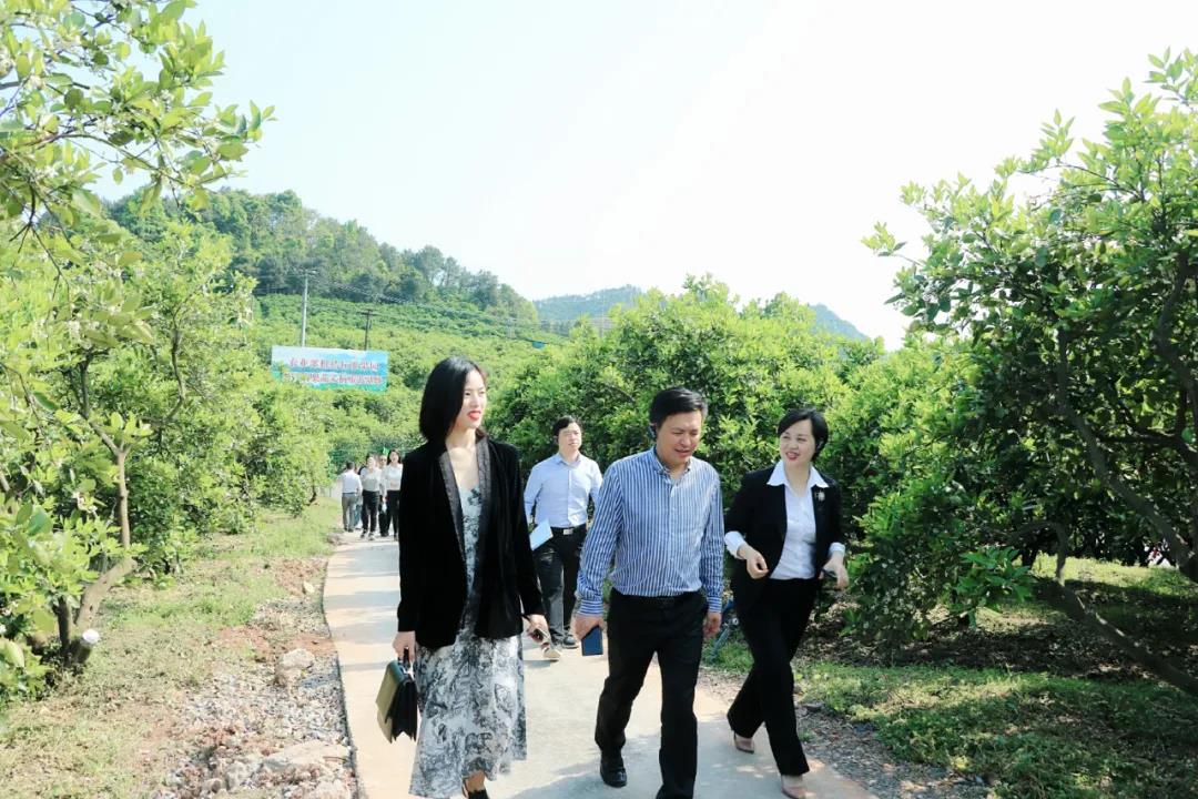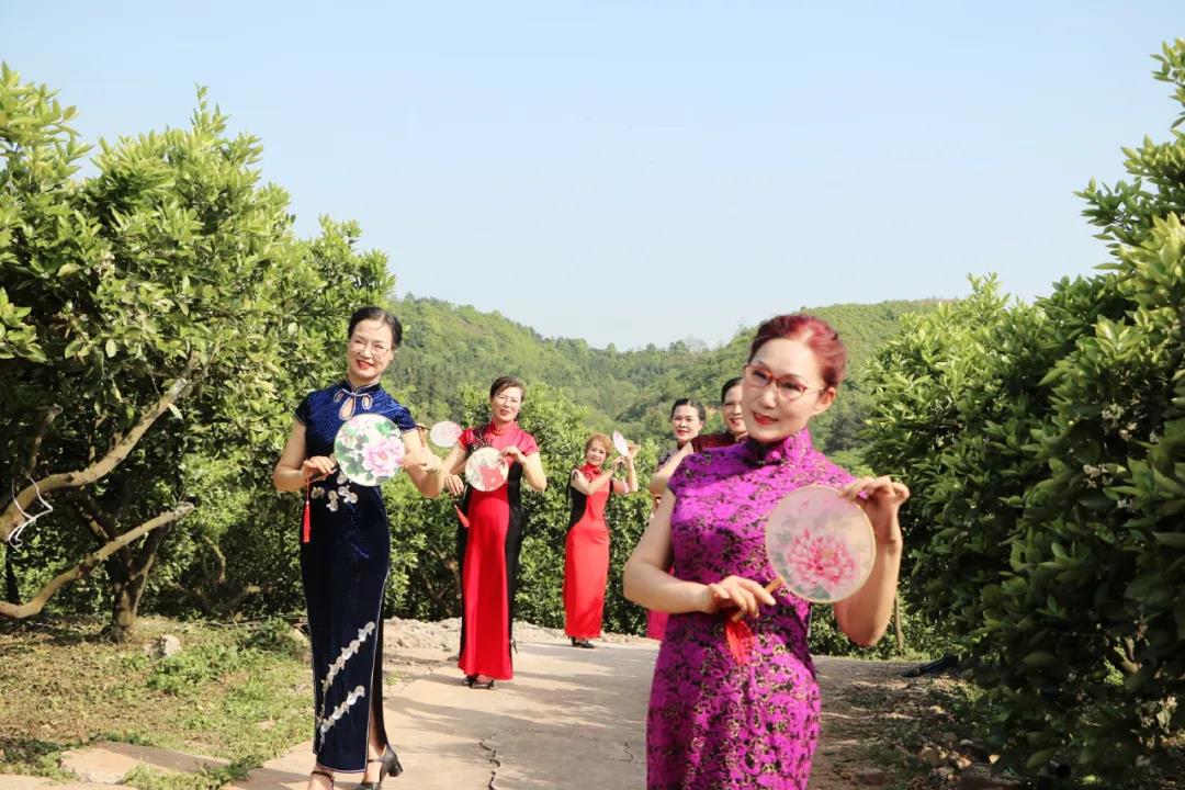 签约仪式之前,领导嘉宾们来到胡柚种苗培育中心和胡柚基地,一起欣赏恣肆怒放的胡柚花,花香也弥散开来,引得大家纷纷登上观景台拿出手机拍下这美丽风景。在悠扬的乐曲声中,旗袍秀《流彩柚林》精彩上演,让人流连忘返。