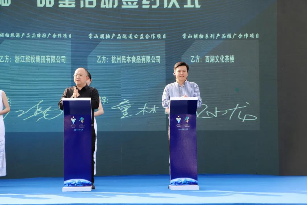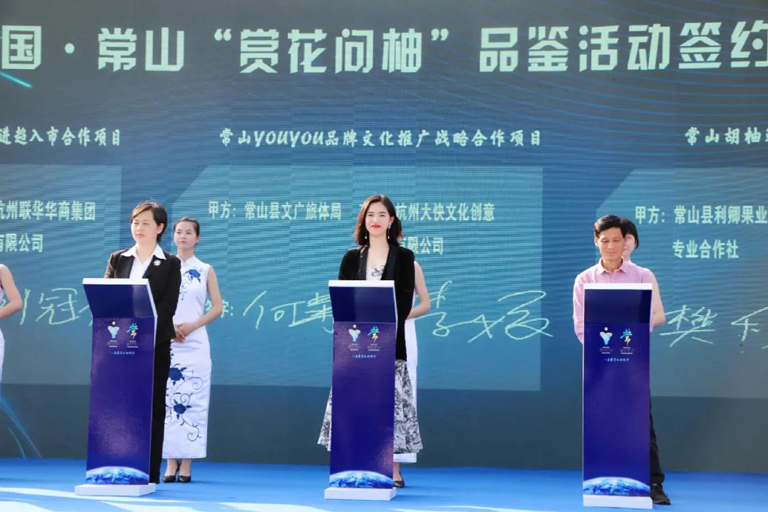 4月21日下午,2021中国·常山“赏花问柚”品鉴活动在同弓乡太公山国家标准果园隆重举行。常山县委书记潘晓辉、县人大常委会主任刘石平、县政协主席林红汉、县委副书记、政法委书记翁旭东等县四套班子领导亲临现场。德信产商文集团副总裁、开发事业部总经理卫小龙,德信产商文集团总裁助理、大快文化副总经理李媛等参加活动并完成合作签约。