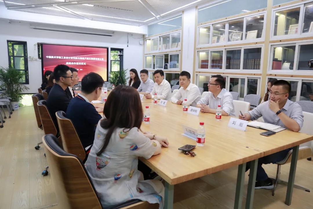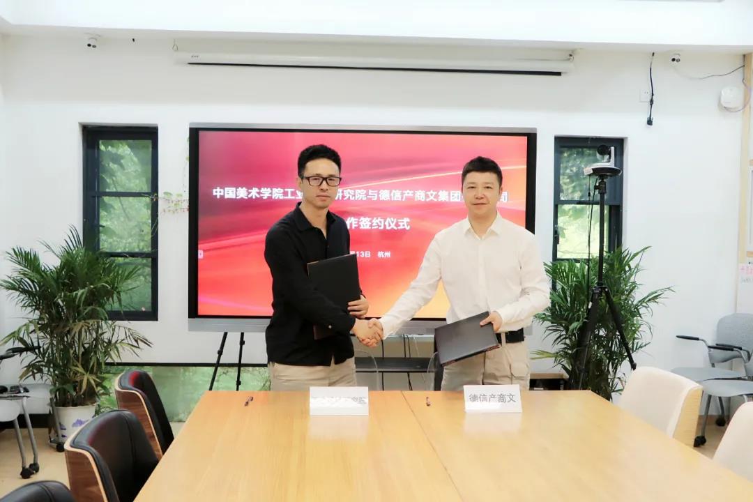 5月13日下午,中国美术学院工业设计研究院与德信产商文集团于中国美术学院象⼭校区⽂创中⼼共同签订战略合作协议。
