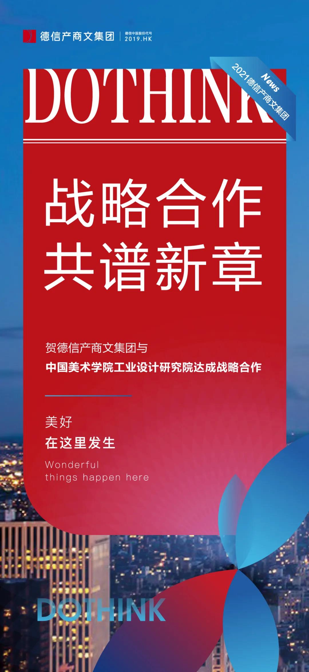 开启新篇,共创未来。本次签订的战略合作协议是德信产商文集团与中国美术学院工业设计研究院合作的美好开端,双方将以此战略合作为契机,携手同行,开创美好未来!