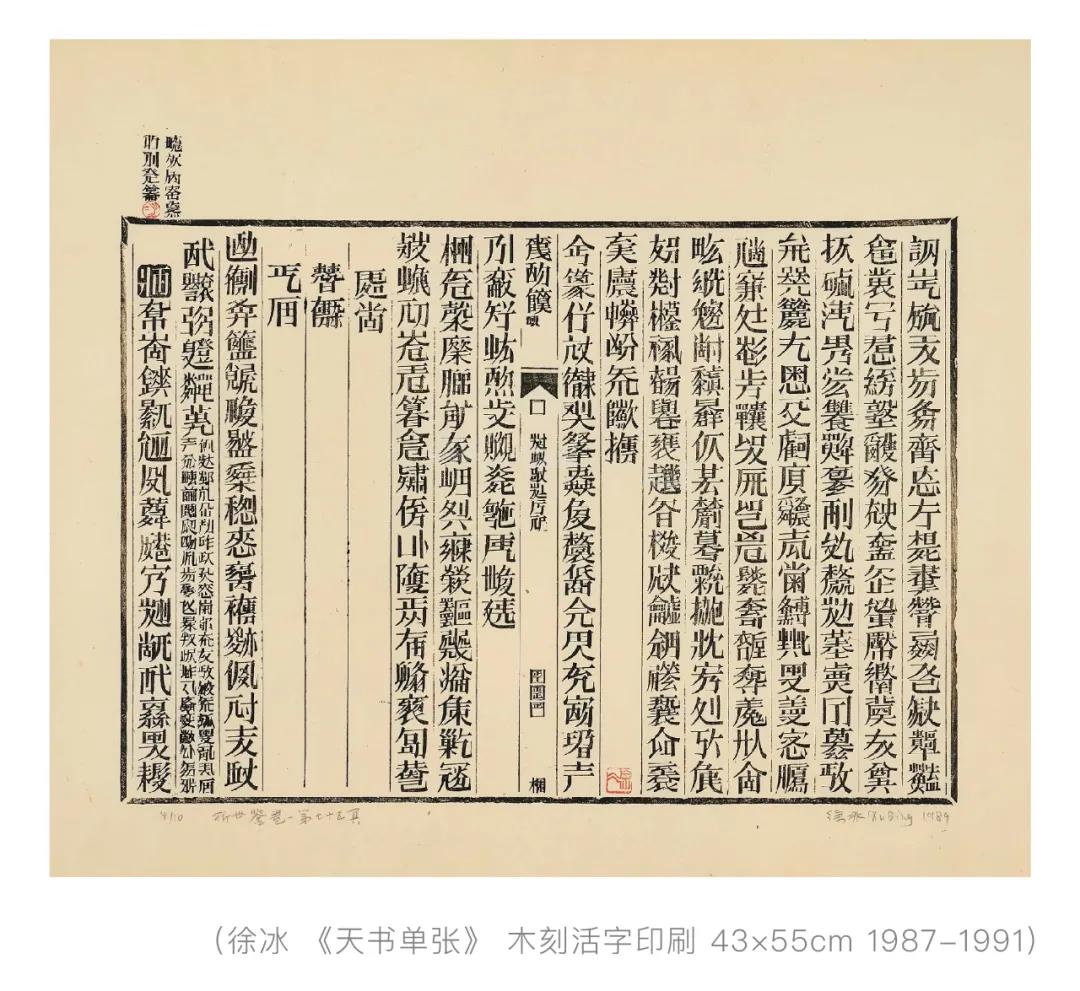 《天书》,艺术家徐冰的成名作。一部以汉字为原型创作,包含了4000多个字的创意作品,有字的形体却没有字的意思,读不出任何内容,这些“不存在”的文字,表达了徐冰对现存文字的遗憾。