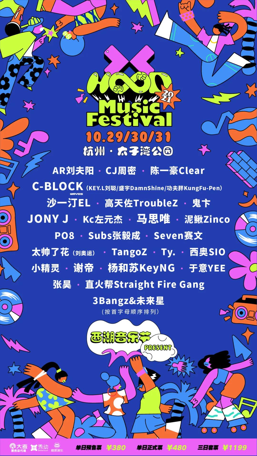 10月29日-10月31日,2021 X-HOOD音乐节,三天全嘻哈盛宴,JONY J、C-BLOCK、马思唯、谢帝、杨和苏KeyNG、Ty. 、沙一汀EL、鬼卞、TangoZ等25组艺人,将用说唱Show出他们的态度。 以西湖为Hood,在这里,每个人都有属于自己的Beat,你可以找到最劲爽的Flow,以及最自在的Hook。
