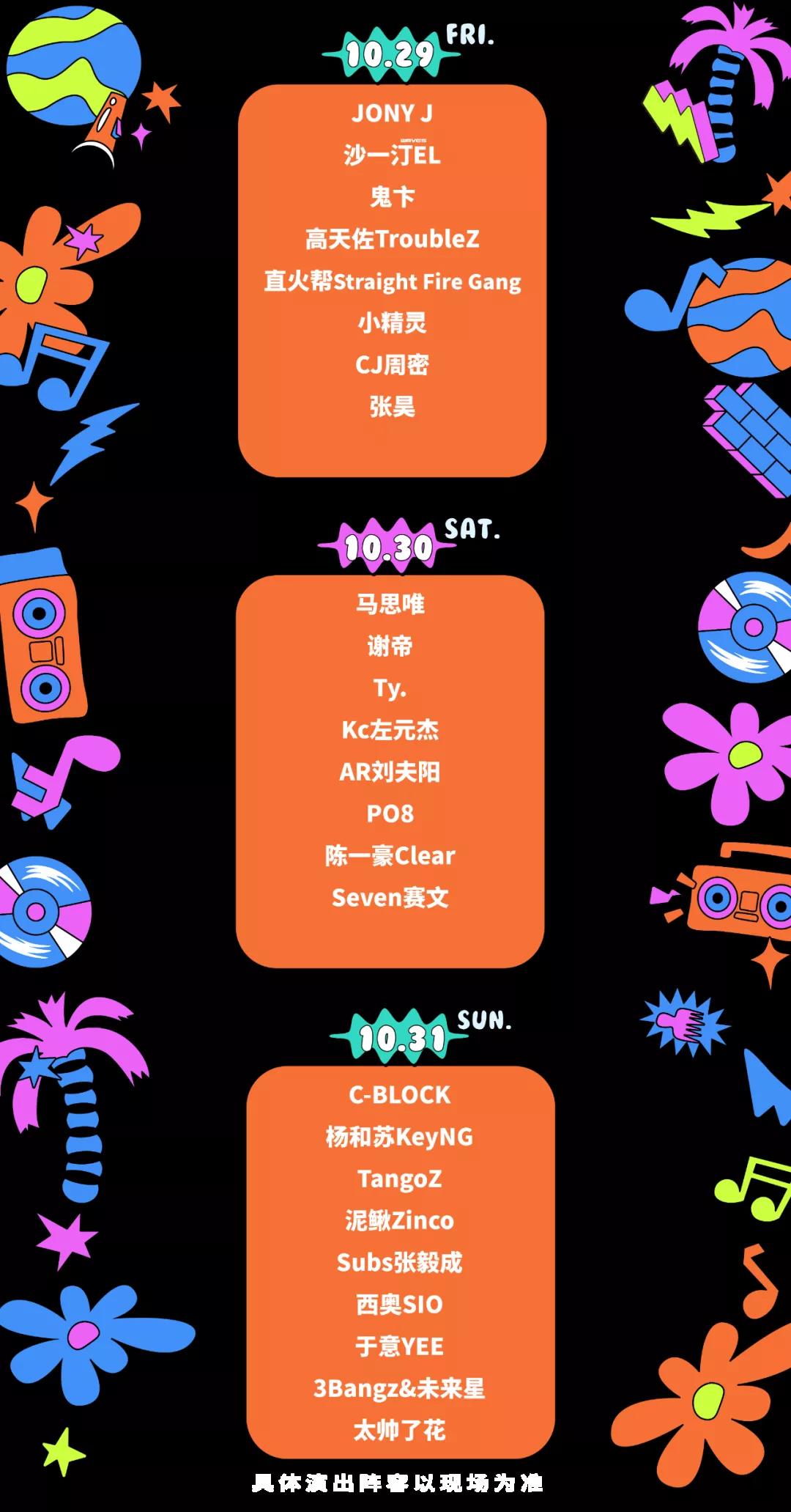 10月29日-10月31日,2021 X-Hood音乐节,三天全嘻哈盛宴,JONY J、C-BLOCK、马思唯、谢帝、杨和苏KeyNG、Ty. 、沙一汀EL、鬼卞、TangoZ等25组艺人,将用说唱Show出他们的态度。