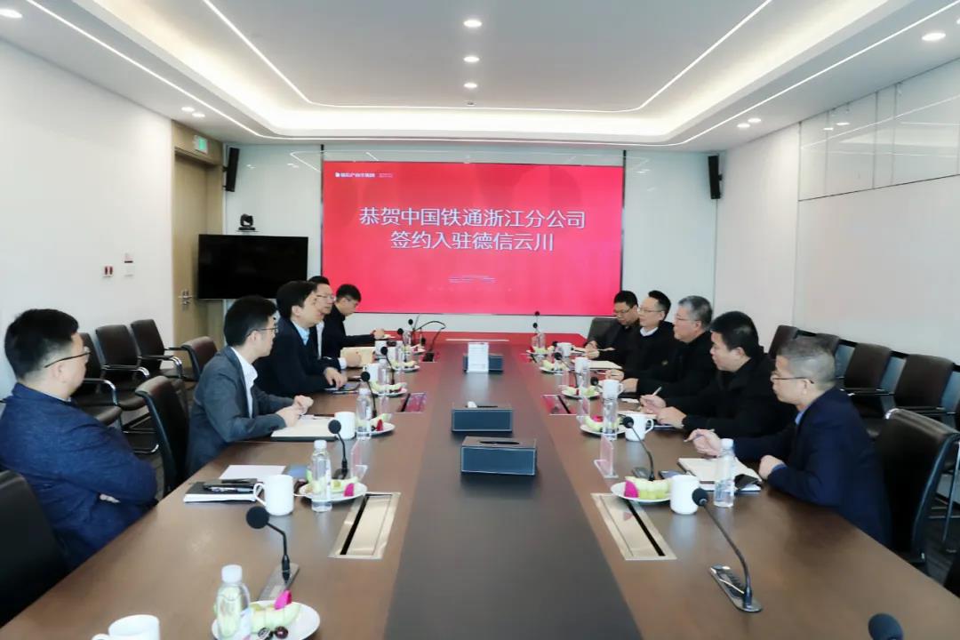 卫总详细介绍了德信产商文集团的战略布局及重点项目情况。卫总表示中国铁通具有很强的实力,希望借助此次浙江总部落户德信·云川的机会,双方能够紧密合作,未来可以结合德信产商文集团自身的业务模块共同开拓更多的合作机会。卫总指出,后期德信·云川项目会积极做好服务工作,为中国铁通浙江分公司的入驻提供有力的支撑。