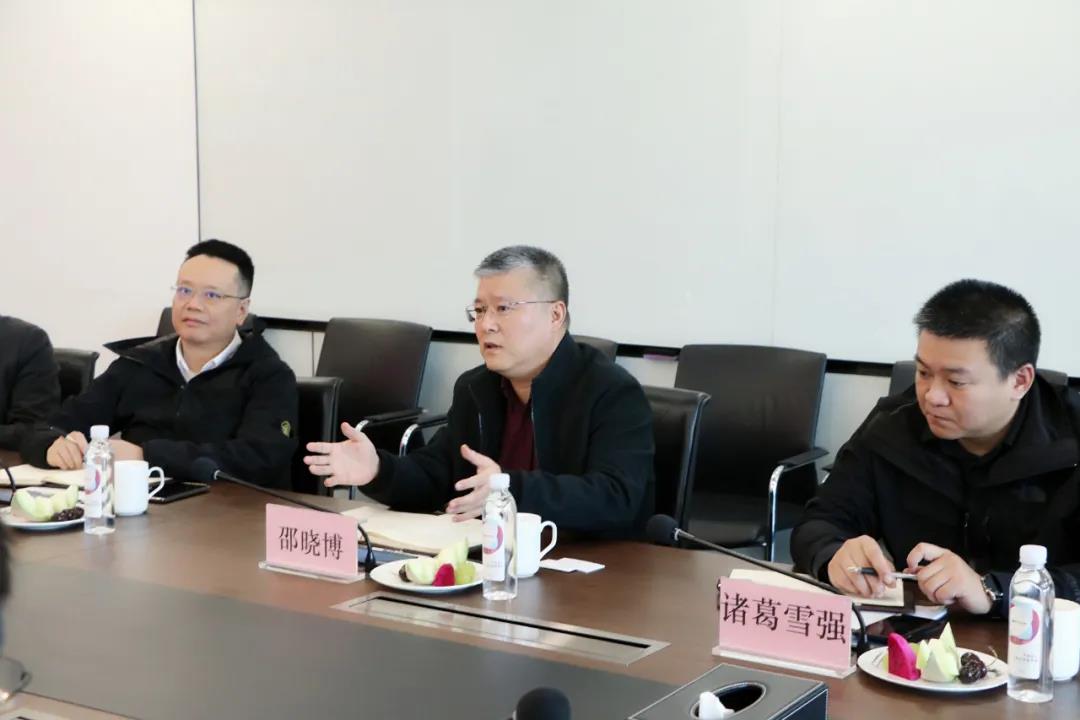 随后,双方领导移步至会议室展开座谈交流。德信产商文集团副总裁兼开发事业部总经理卫小龙对邵总一行的到访表示热烈欢迎。