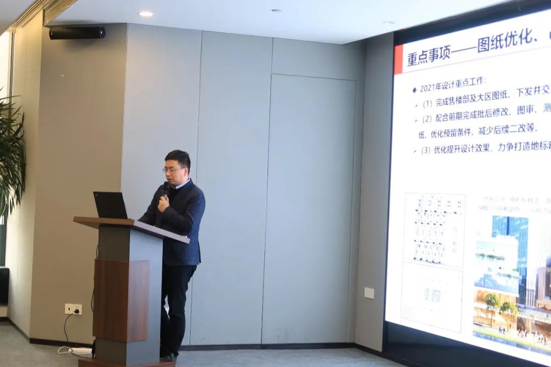 首先营销部总监辛娣佳对房地产市场情况和销售数据情况两个方面进行了汇报,详细对2021年的营销、客服的工作做出了分析总结,同时也对2022年营销、客服的工作重点进行阐述。