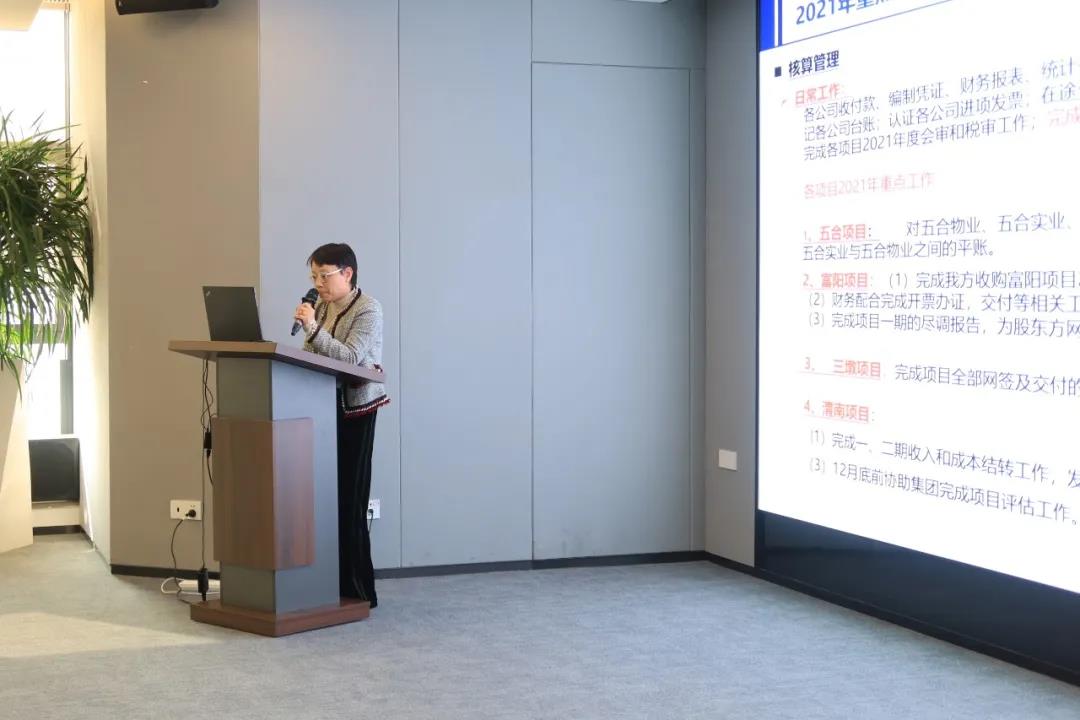 接下来各职能负责人就2021年年度工作完成情况进行了总结汇报,并指出自我不足及后续改进措施,从自身专业角度出发提出了对公司发展、工作提升提出了可行性的优化建议,并对2022年的工作目标和规划进行汇报。