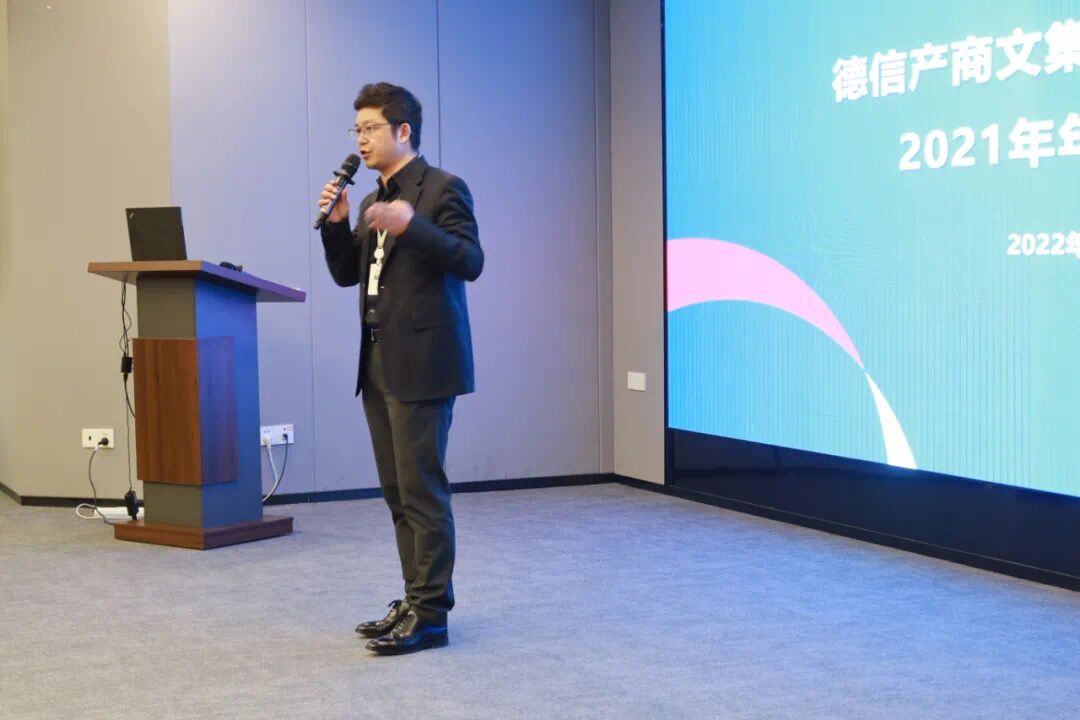 德信产商文集团总裁胡斌提出:在现今的大环境中,德信产商文集团要坚定不移地去发展,拧成一股绳,稳步快速转型,在赛道中形成自己的核心竞争力。2022年是艰难的一年,希望大家以高标准要求自己,做好准备,让产商文继续蓬勃发展。