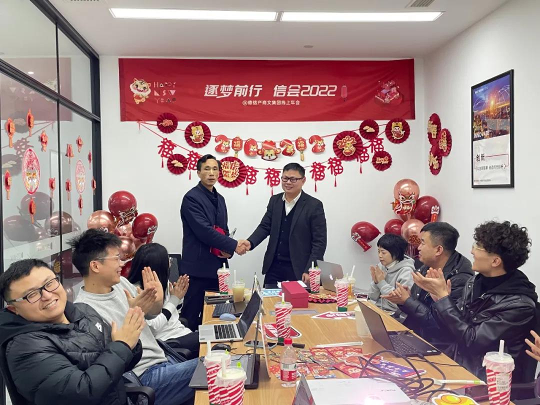 由于受到疫情的影响,大家没有办法坐在同一个会场里共贺新春,德信产商文集团以线上年会的“云模式”,将彼此的心连在一起,开启了一场热情满满的年终聚会。德信控股集团董事长胡一平、德信产商文集团总裁胡斌、德信产商文集团副总裁兼开发事业部总经理卫小龙、德信产商文集团副总裁兼德信产城董事长叶勇抱,以及各板块、各个条线的全体产商文领导同事欢聚一堂,见证了德信产商文集团的美好时刻,共同开启2022年新的征程。