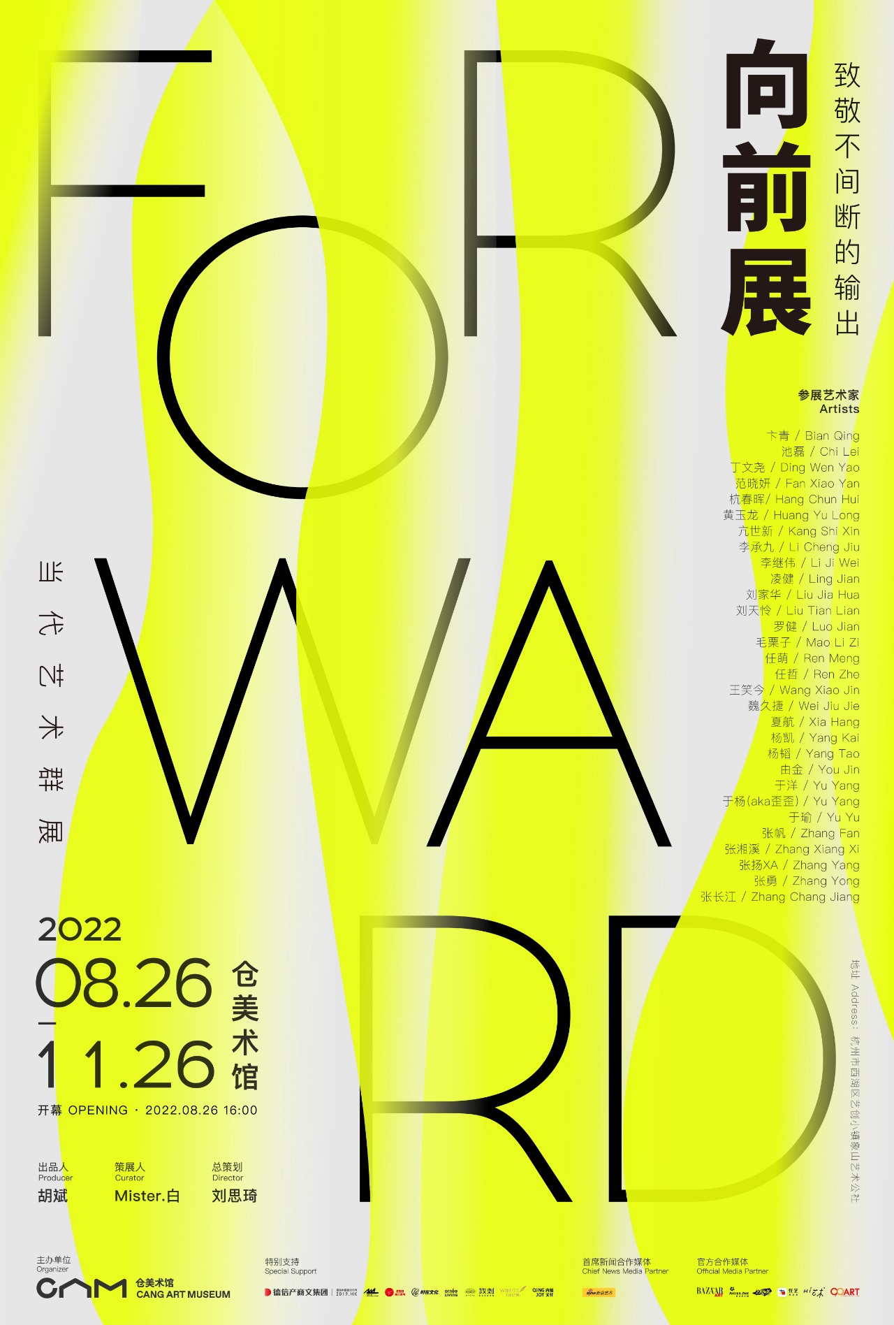本次展览邀请到横跨本世纪五十年代至九十年代,在艺术前沿保持活跃的三十位艺术家,收录他们在当下这个时代节点里,以不同年龄、视角、创作方式及研究方向,所输出的最新艺术表达,凝炼在时代碰撞中,不断向前的精神共性。展览作品涵盖当代艺术雕塑、装置、当代水墨、潮流绘画等多种艺术门类,通过主题展区串联,部分雕塑装置作品将与仓美术馆公共空间展开深度互动,进行一次时代与精神的艺术对话。
