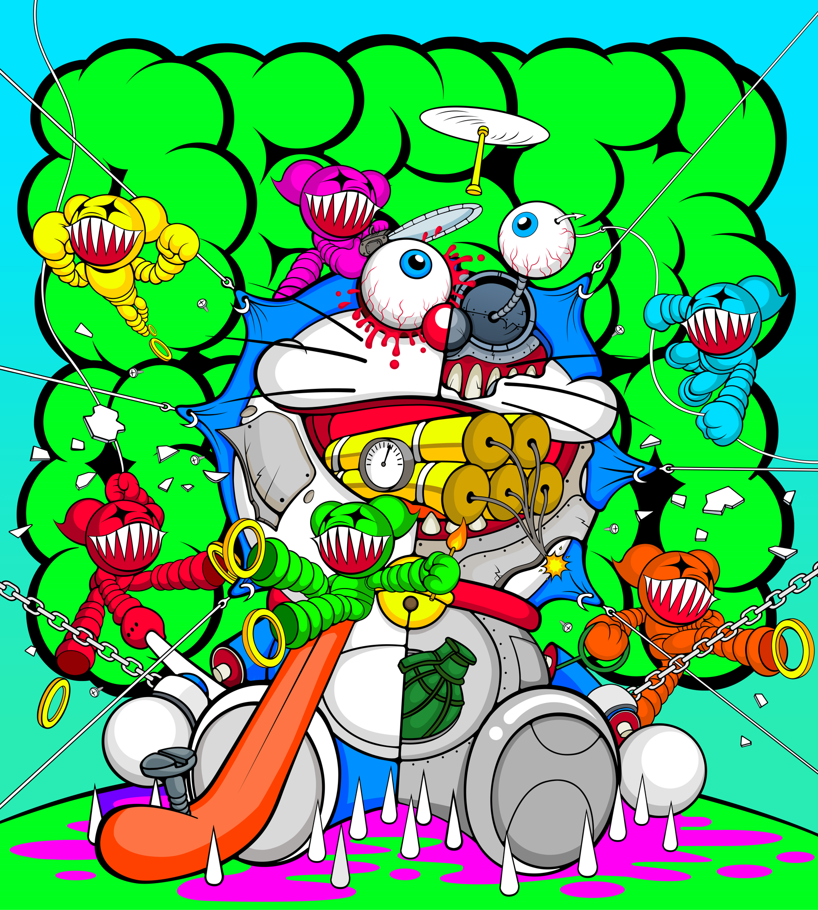 中国知名潮流艺术家,同时兼具摇滚明星、潮牌主理人等多重身份。其作品以“画面的幽默态度与艳丽色彩”为原点跨越绘画、数字艺术、时尚、摄影、音乐、视频等多重领域,被“White Rabbit Gallery, Australia”、“M+ Museum, Hong Kong”等国际艺术机构收藏。