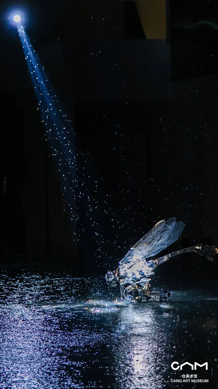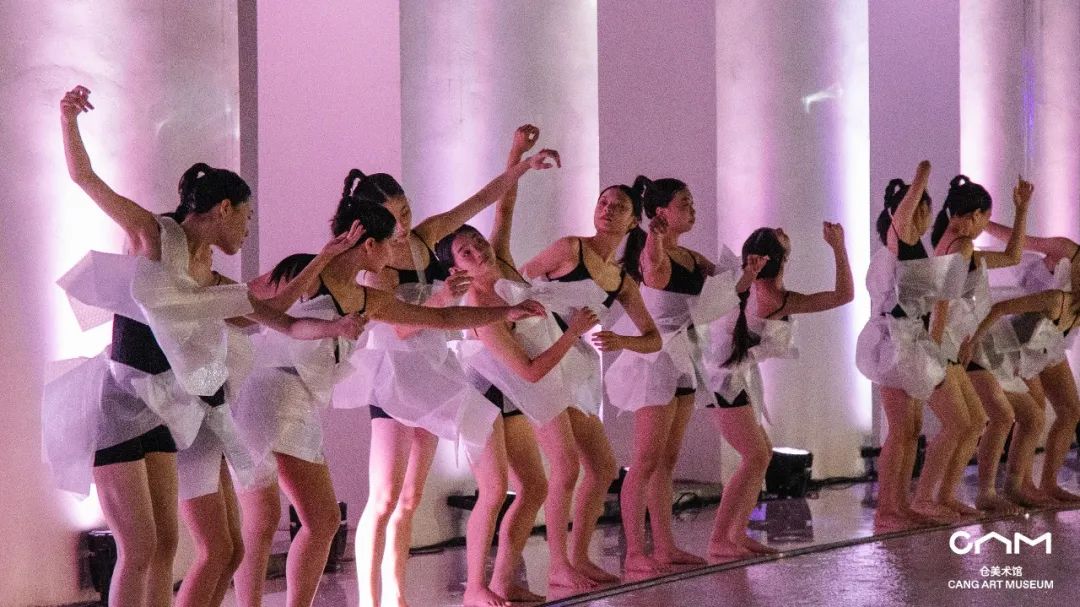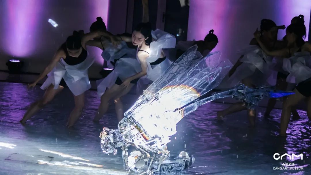 开幕日晚间,在仓美术馆水镜广场特别举办了一场VIP品鉴之夜。在场来宾在跨界多元的艺术表演中,自由探讨当代艺术的意义发展和跨界潜力。酒会现场,来自风乎艺术的舞蹈家们,在突如其来却又恰如其分的夜雨中,以仓美术馆地标性景观水镜广场和艺术家夏航的作品为灵感,特别创作并呈现了一场感染力超强的环境艺术舞蹈,人天合一的表演为这场美妙的艺术之夜更添浪漫。
