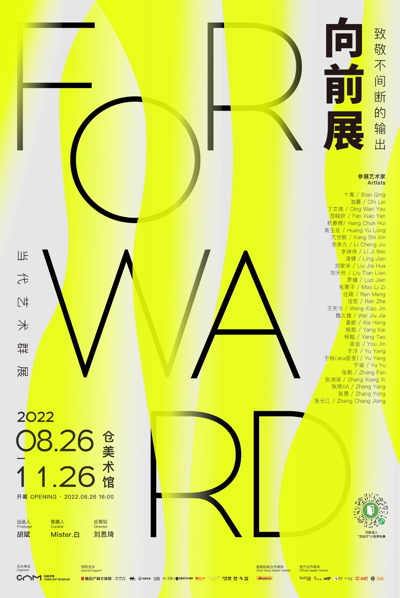 2022年8月26日,“向前展-致敬不间断的输出”当代艺术群展在杭州•仓美术馆正式开幕。本次展览由仓美术馆主办,作为仓美术馆开馆一周年后诠释成长与共融的年度大展,邀请了三十位知名艺术家的近百件最新创作,将持续3个月为大众带来视觉盛宴。