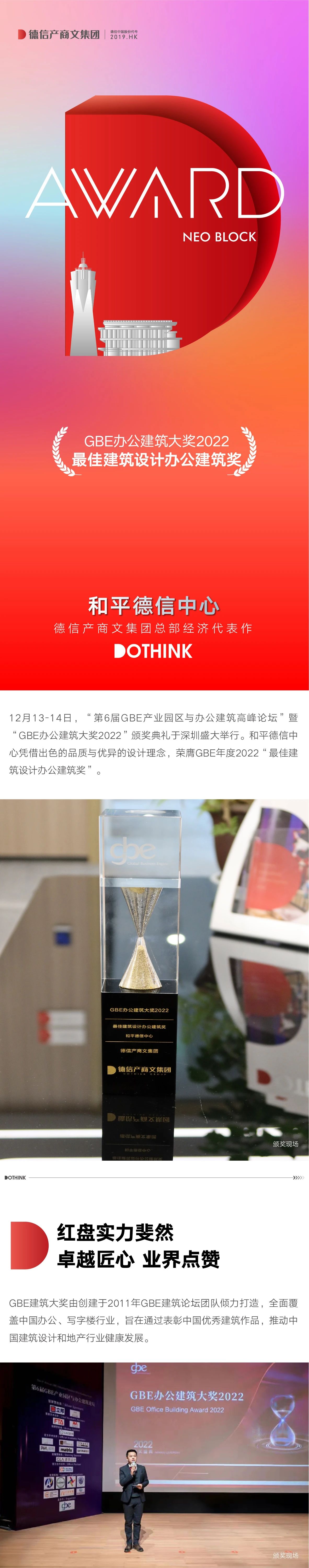 AWARD | 和平德信中心荣获GBE年度“最佳建筑设计办公建筑奖”