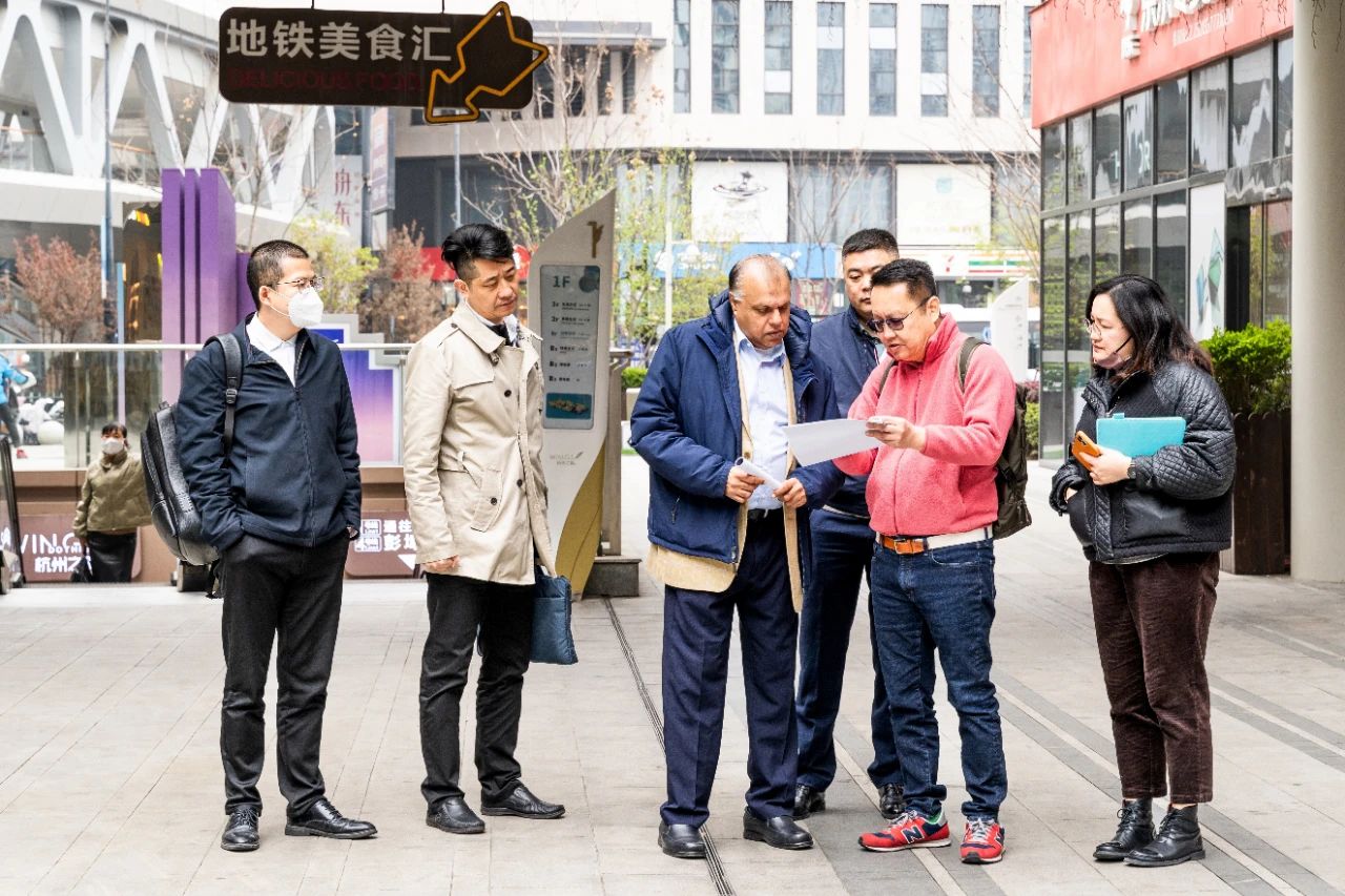 首先,阿努若·费喃多总领事一行莅临德信产商文集团重点打造的杭州城东核心区域项目——杭州之翼,并现场实地考察交流。在杭州之翼的商业中心内,大家详细听取了项目的情况汇报及进博会常驻国家馆一期二期的筹备进度。